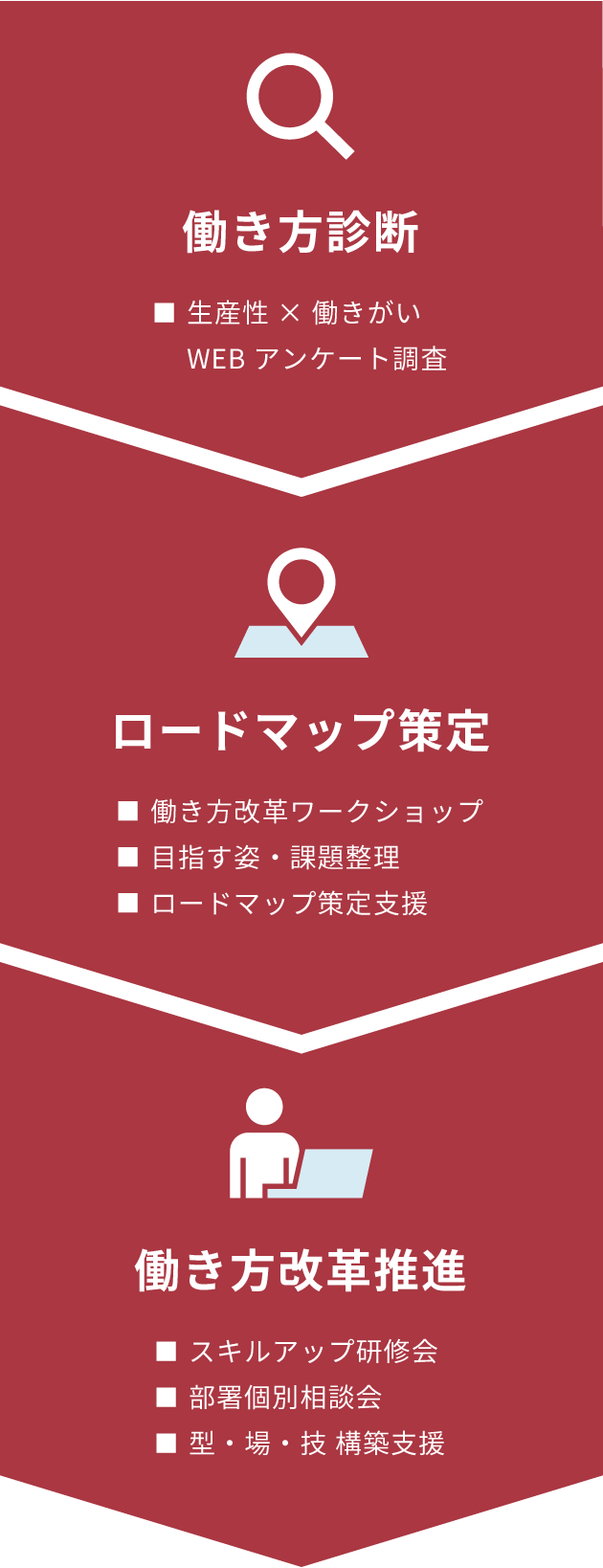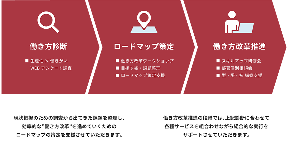 働き方改革を進めるためのロードマップの策定、改革の実行までを