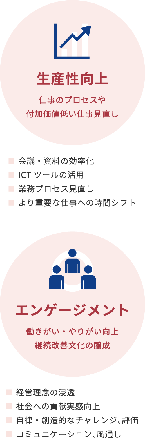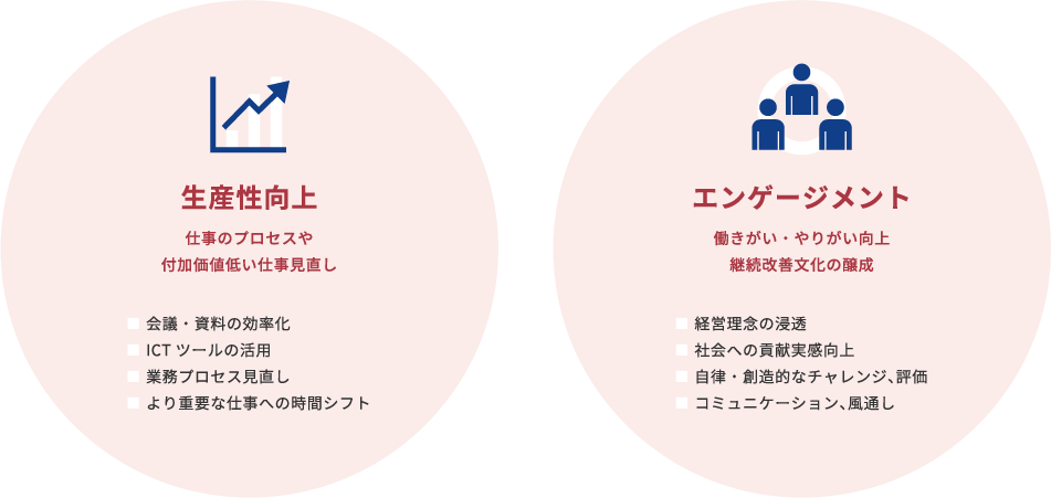 「生産性向上」のみに着目するのではなく仕事や企業そのものとの「エンゲージメント」を高め、