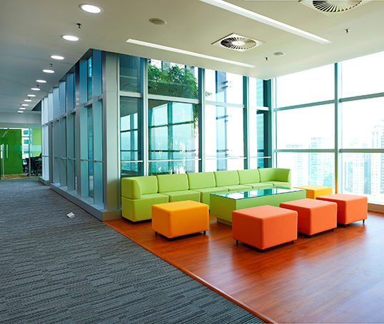 お客様の企業イメージとビジョンを反映して色鮮やかでオープンかつ明るいオフィス作りをお手伝いしました。従来のプライバシーを重視したパネルシステムから、コミュニケーションを重視したオープンコンセプトへ大胆にご変更いただき、更なる発展を目指す新しい環境づくりをお手伝いいたしました。