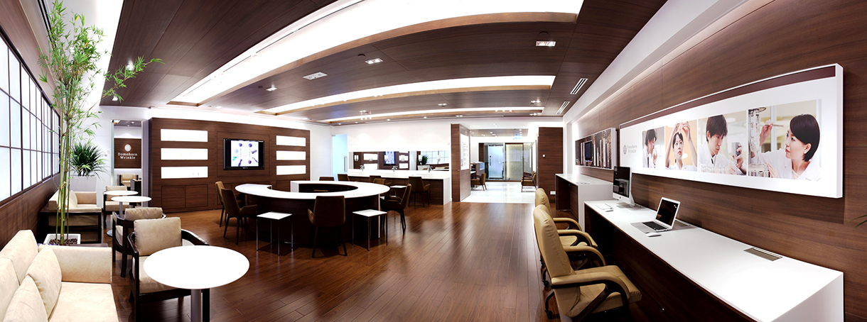 海外初店舗開設に伴う、店舗とオフィスの内装、設備、什器工事一色トータルで提案 世界的な成功の足がかりとなる、店舗、事務所は、ブランドイメージと合致する、ダークなブラウンと白を基調とした、落ち着いたそしてクオリティの高いデザインです。短い工期でしたが、店舗、オフィスともにご希望日に引渡しさせていただきました。
