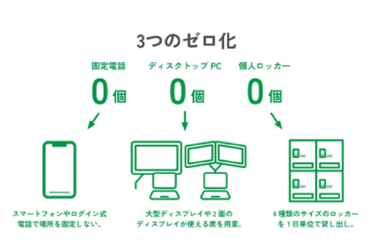 今日に至るまで、オフィスの無線LAN化、席を自由に選択する「フリーアドレス」の導入や、リモートワーク対応のオフィスでの「人を育てるオフィス」「地域に開かれたオフィス」など、半歩先の未来を予測し様々なワークスタイルを実際に取り入れてきました。