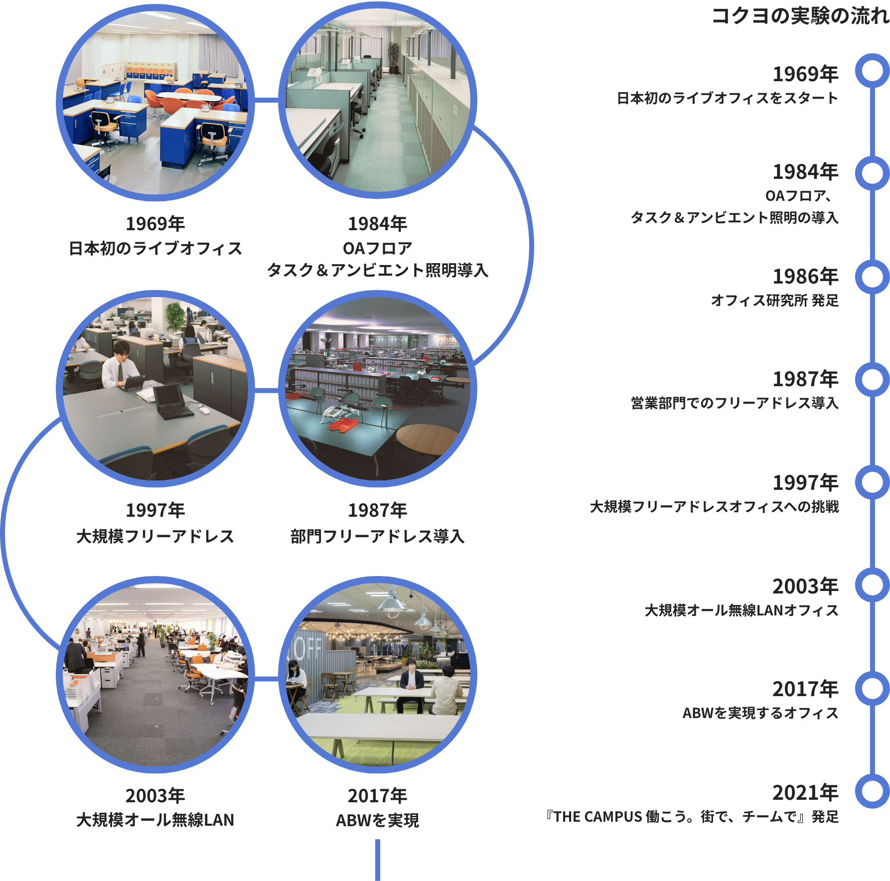 コクヨは1969年に、「生きた実験室」をコンセプトに、コクヨ社員が実際に働く場をご覧いただける日本初の「ライブオフィス」をスタートしました。
