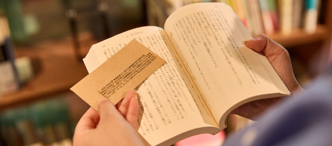 選書した従業員による推薦コメントが記載された栞。