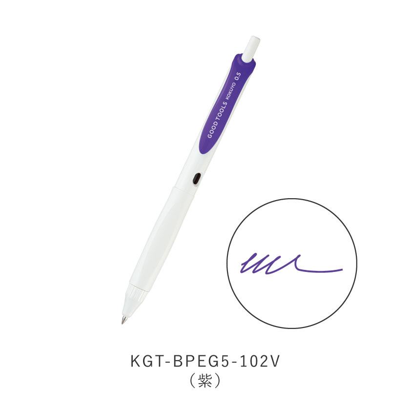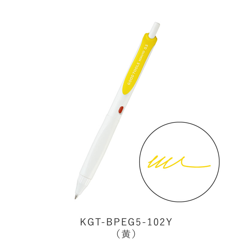 ●製品色・インク色/D…黒、R…赤、B…青、DB…ブルーブラック、LB…水色、Y…黄、P…ピンク、V…紫、YR…オレンジ、YG…黄緑 ●ボール径/0.5mm ●外寸法/軸径φ12×長さ143mm ●機構/ノック式 ●材質/軸:PC、グリップ:エラストマー ●インク/水性染料ゲルインク