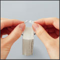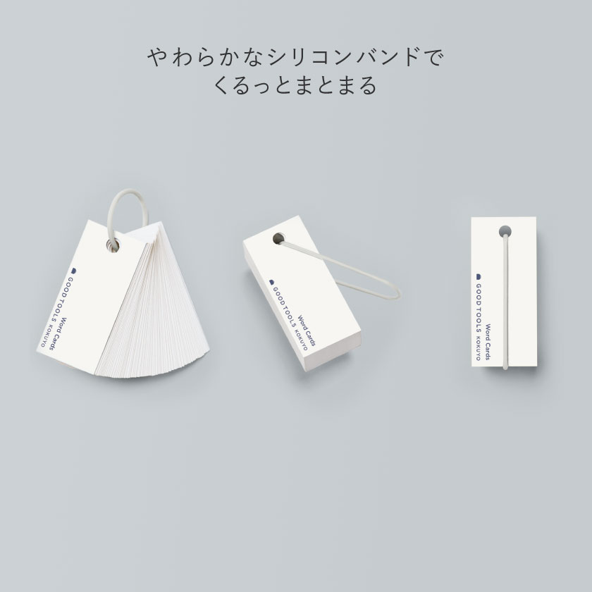 やわらかく伸びる素材のバンドで、 カードが広がらないようにまとめることができます。