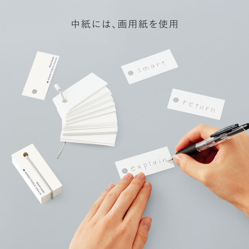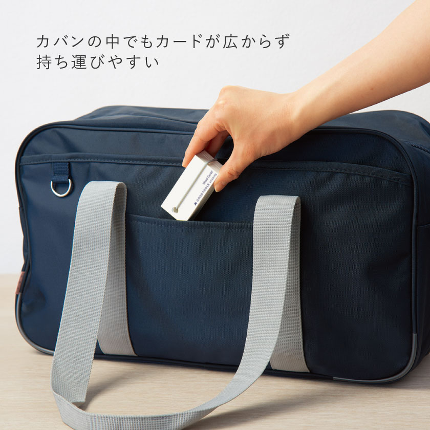 やわらかく伸びる素材のバンドで、カードが広がらないようにまとめることができます。