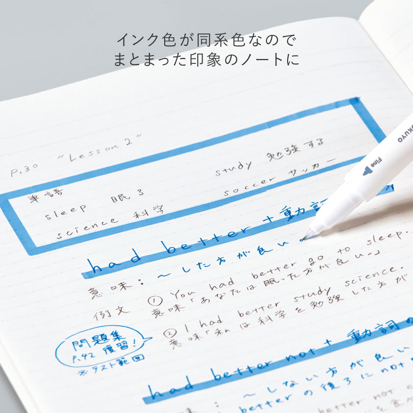 マーキング、文字書きそれぞれに適したインク色なので、 ノートや手帳がスッキリまとまります。
