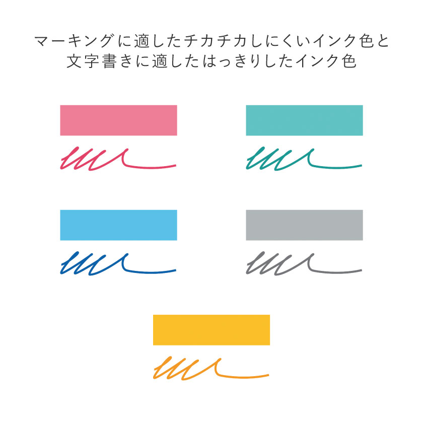 マーキング、文字書きそれぞれに適したインク色なので、ノートや手帳がスッキリまとまります。