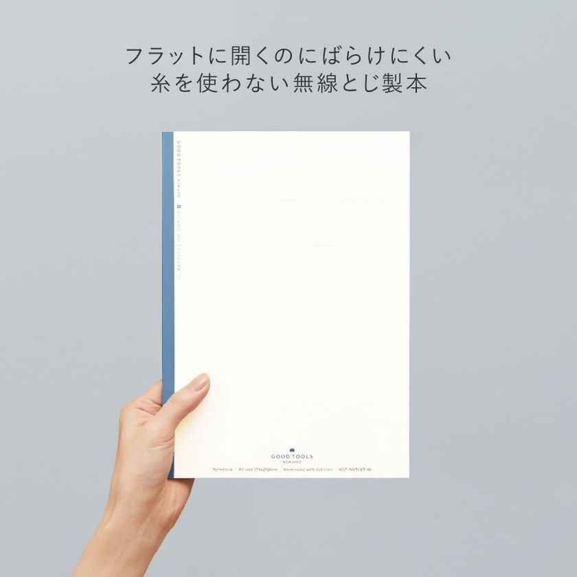 ●サイズ/セミB5 ●タテ252×ヨコ179mm ●罫内容/KGT-NB3CAT-W:普通横罫(A罫)ドット入り、KGT-NB3CBT-W:中横罫(B罫)ドット入り、KGT-NB13S5-W:5mm方眼罫 ●枚数/30枚 ●中紙/上質紙(森林認証紙) ●紙厚/70g/㎡ ●背クロス/紙クロス(ラミネート加工) ●製本様式/無線とじ