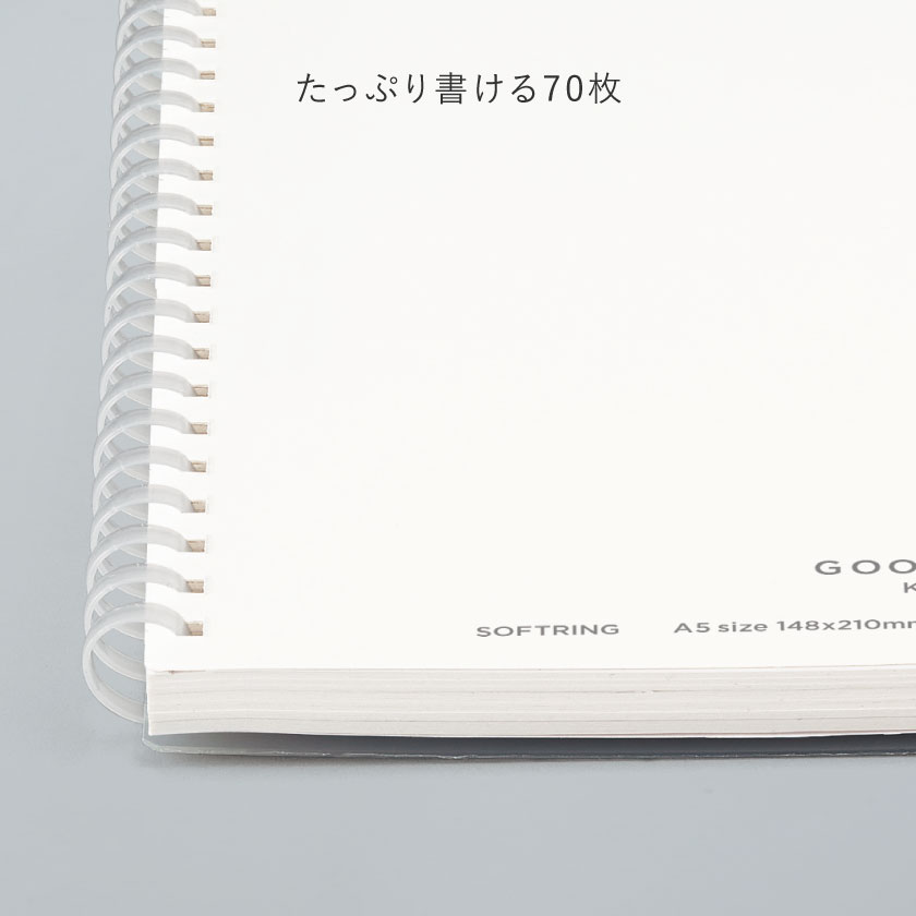 ●枚数/70枚 ●中紙/上質紙 ●表紙/PP ●リング/オレフィン系樹脂