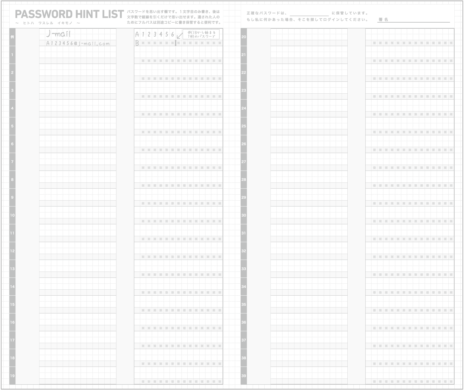 Here’s where you can document your ever-expanding list of passwords. For security reasons, it’s best not to write them out in full, so just put down hints to remind you.
