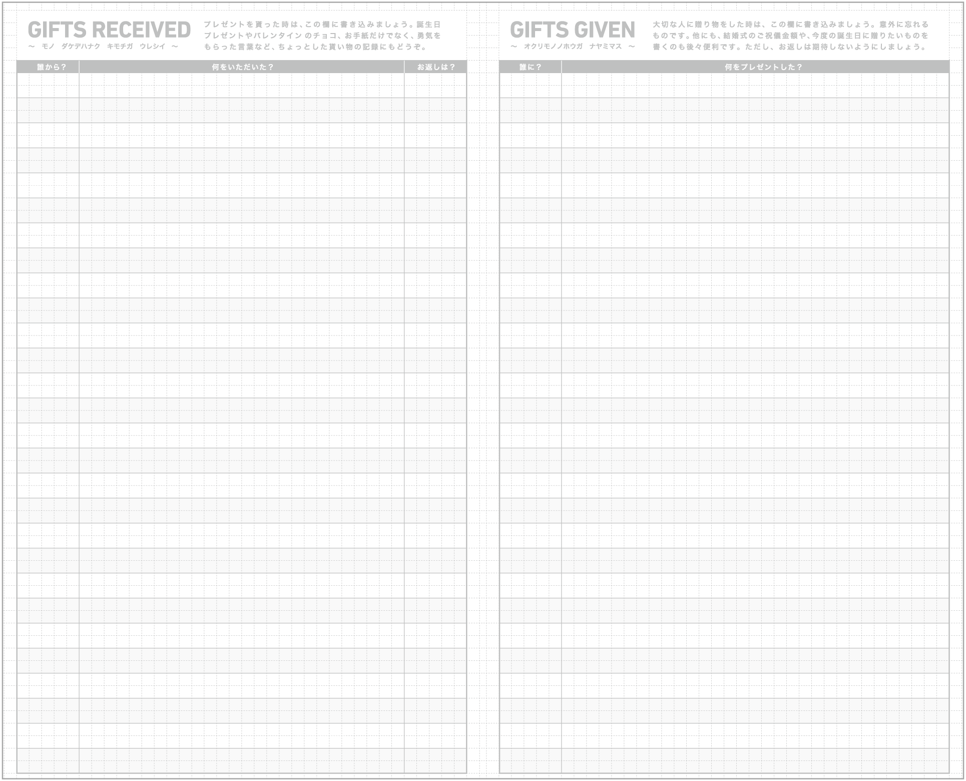It’s all too easy to forget gifts received. Even if you resolve at the time to return the favor later, you’ll probably forget unless you write it down. You can also use this list to log gifts you've given.
