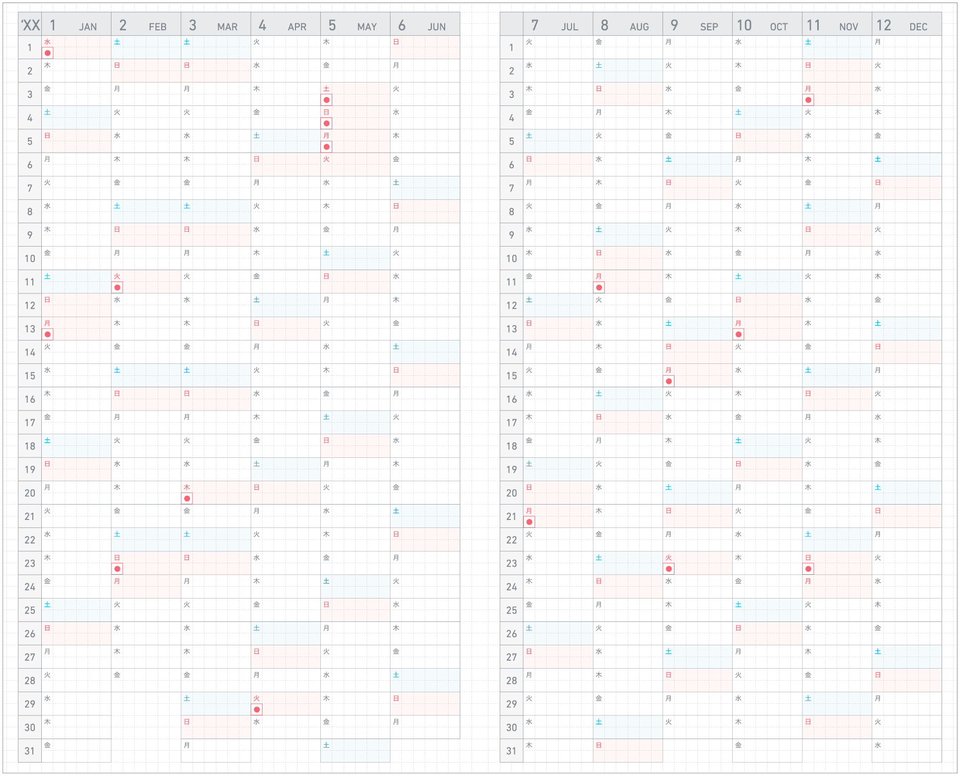 The yearly schedule spread lets you see at a glance what lies ahead. Fill in the dates ahead of time for long-term work projects, qualifying exams and even holidays, so you can work backwards and pace yourself.
