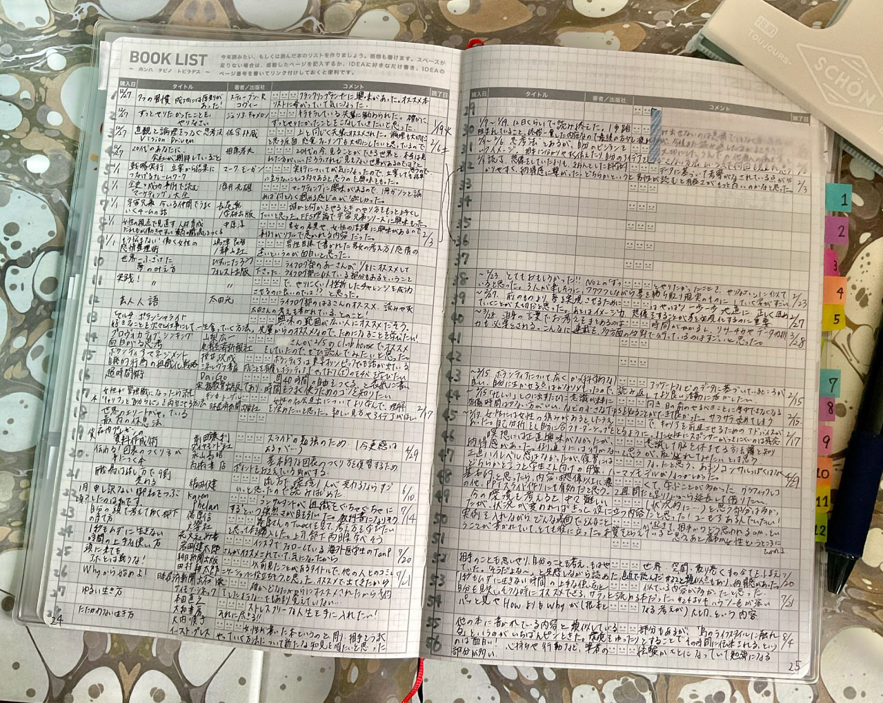 Book List: Rather than simply listing the books I’ve read, I write the reason why I wanted to read the book, alongside the title! I put all my impressions on the right-hand page, so each book has one line of content across the double-page spread. I haven’t read all the books on my list, but when I look back later, maybe I’ll think, “Oh, right, I wanted to read that book!” So I recommend adding a book to your list as soon as you think you might want to read it sometime! Of course, my impressions of each book are also important, and I try to leave an honest account of how I felt at the time, like when a book I didn’t think would be interesting turned out to be surprisingly interesting. It’s nice to know how many books you've read in a year. (*'ω'*)