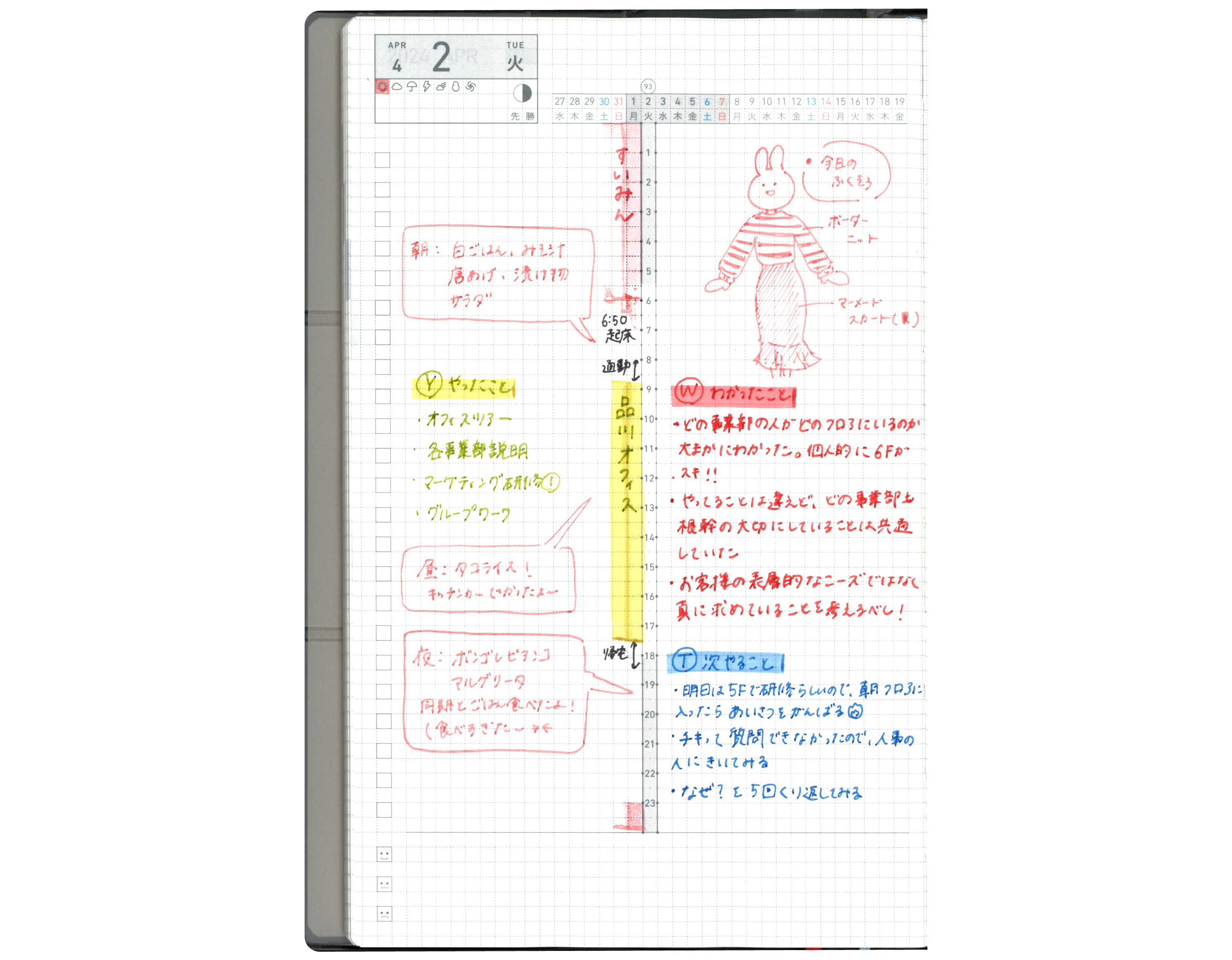 その日の仕事の中で、「やったこと」「わかったこと」「次やること」を記録することで日々の仕事の質向上に。