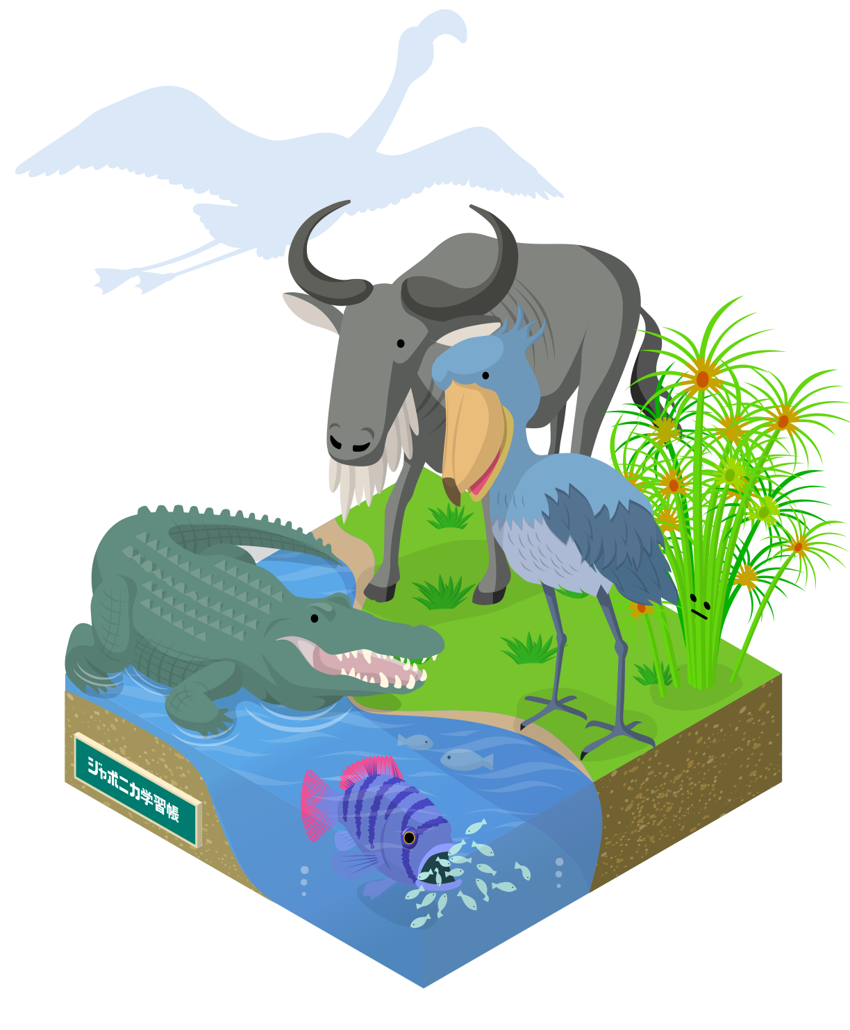 子どもの学びを応援するジャポニカ学習帳の監修のもと、アフリカのみずべに暮らす生き物たちを紹介していくぞ!