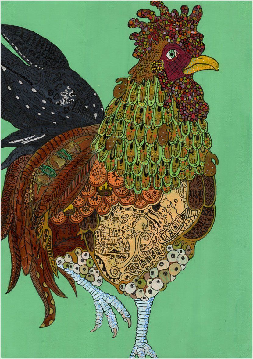 この作品は、見れば見るほど、いろいろなものが詰まっていて、面白い。ちょっと気持ち悪いかなという表現も好きで、この絵のエネルギーというか、刺激を受けました。自分は生き物が好きで、大きくバンと動物をよく描くんですけれど、自分が描きたい絵に近い感じがして。きれいというより、こういう表現が私は好きです。
