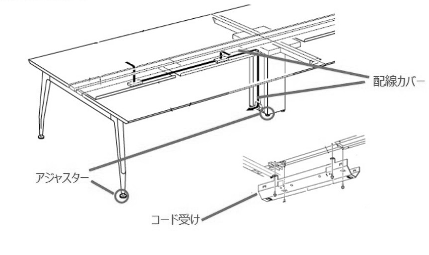 木製天板、木製部材、アジャスター、コード受、配線カバー、アッパーユニット、オプション(パネル、ワゴン等)など
