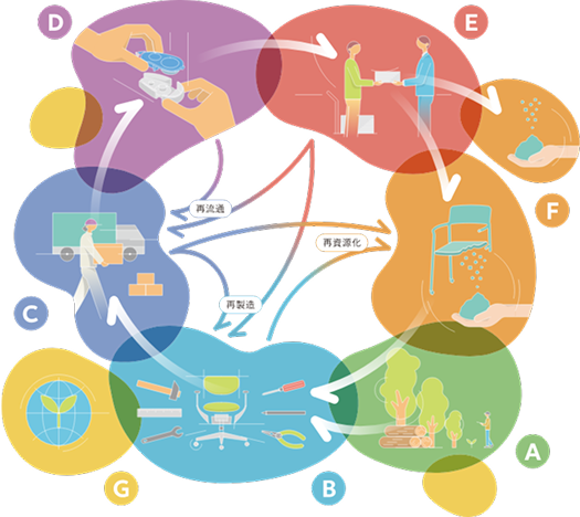 コクヨの循環指針「SUTENAI CIRCLE」に則り、お客様とともに「捨てない社会」を作るためのモノ、仕組みづくりを進めています。