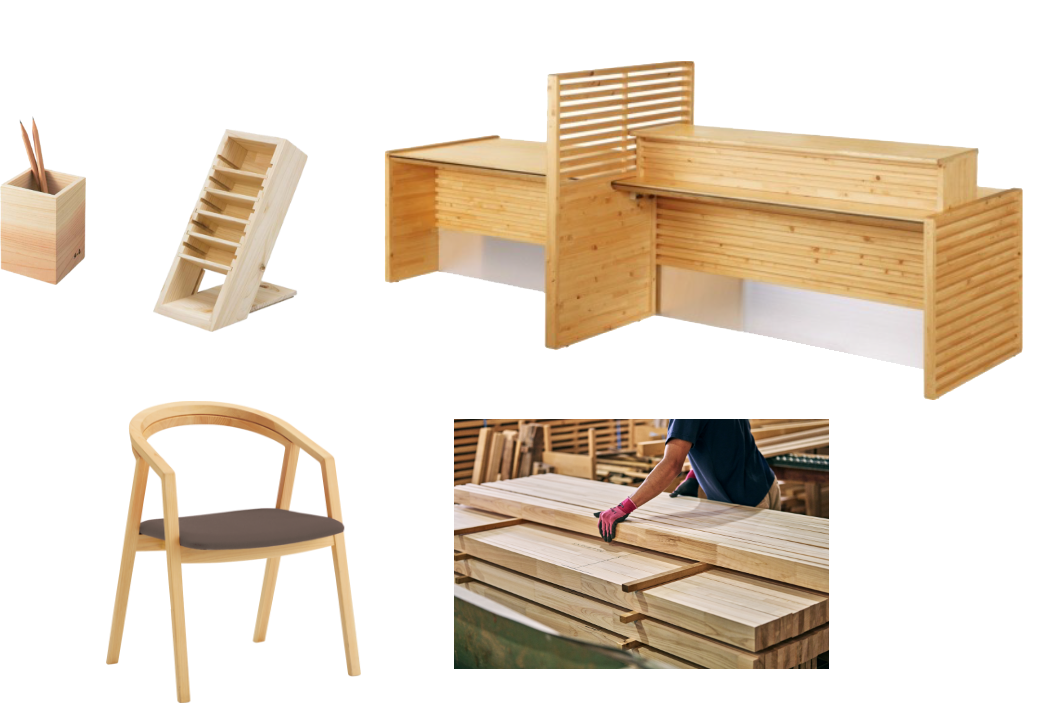 コクヨは、これら森の資源を積極的に活用することにより、新しい木材需要を喚起するとともに、